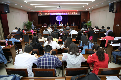 [本网讯]9月23日上午,2014年度新进教师教学培训开班典礼在学院行政楼一会议室举行。副院长何建新,组织人事处处长卢宗元、学生处处长戴丽红、教务处副处长易平、教师教学发展中心副主任吴四九、程卫东和各部门的60余名新进教师参加了典礼,典礼由程卫东主持。