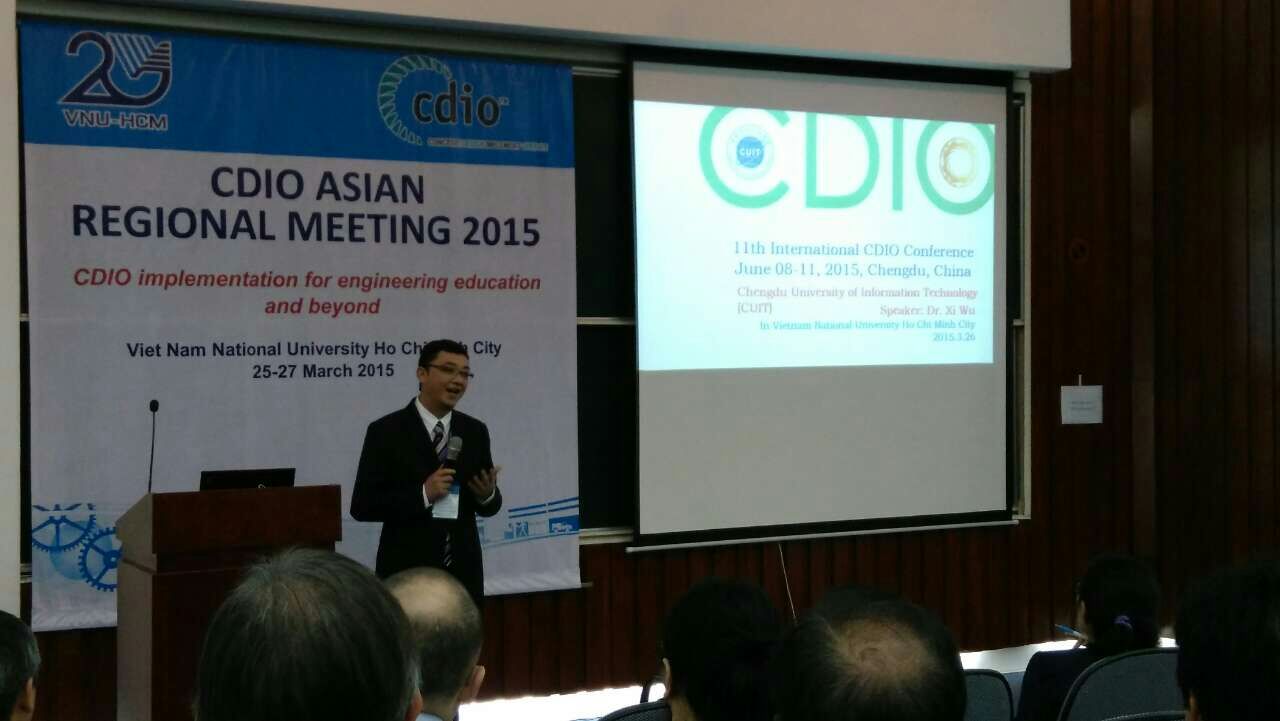 【本网讯】3月24日,学院教务处副处长陈敏(主持工作)、计算机副院长吴锡(兼学院CDIO专员)一行6人赴越南胡志市明国立大学(Vietnam National University-Ho Chi Minh City)出席CDIO组织2015年亚洲区会议。CDIO组织创始人,瑞典查尔姆斯理工大学教授Johan Malmqvist及来自越南、中国、新加坡、泰国、马来西亚、蒙古、日本的各相关高校200余人参加了此次会议。