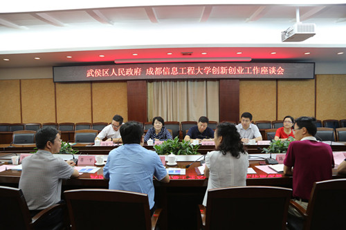 【本网讯】9月8日上午,成都市武侯区人民政府区长林丽、副区长杨建德一行六人莅临新莆京官网就加强区校合作,共同推进创新创业进行交流。学校校长周激流、副校长贺盛瑜及相关部门负责人和教师参加了座谈会,座谈会由贺盛瑜主持。