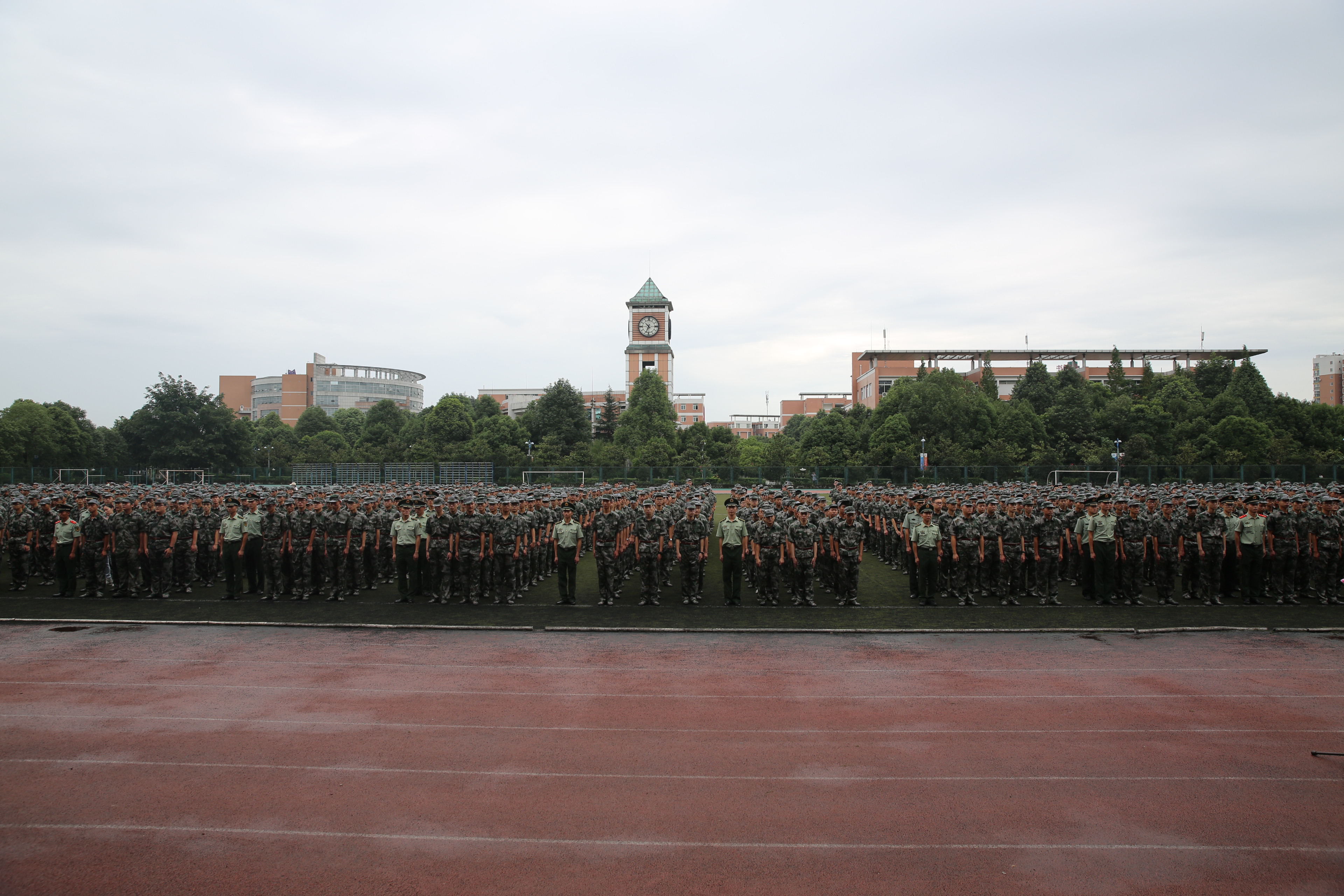 于世祥代表学校向来自祖国各地的新同学致以热烈欢迎,向首次担任新莆京官网新生军训任务的武警警官学院的领导和全体参训教官表示衷心的感谢。他指出,军训对于大学生坚定理想信念、磨砺意志品格、锤炼顽强作风、提高思想修养、增强纪律观念起着十分重要的作用。他提出两点希望:一是全体参训教官、助理教官要精心组织、科学施训,为同学们增强国防意识,接受国防教育奠定坚实基础;二是全体参训同学要不怕吃苦、遵规守纪、认真参训,圆满完成军训科目。