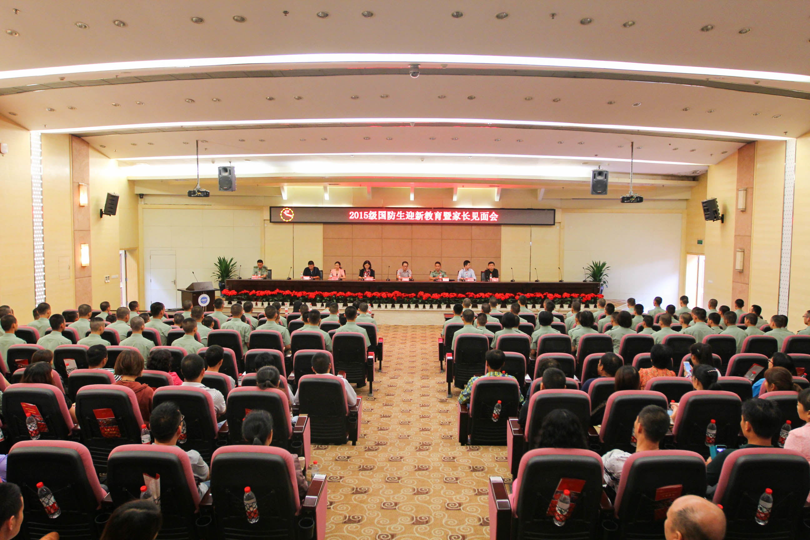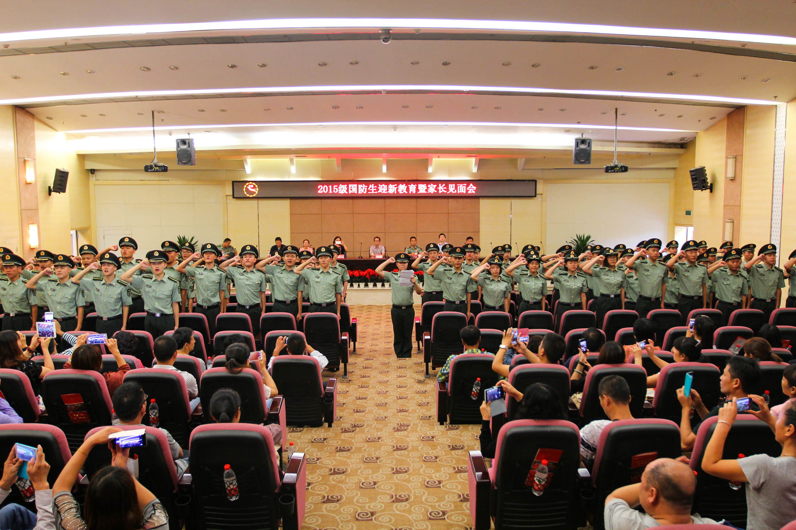 “我为我今天的选择而骄傲,我为我明天的事业而自豪,我必将坚定从军信念,献身强军实践……”9月10日,学校在国际会议厅召开了新莆京39692015级国防生迎新教育暨家长见面会。学校副校长于世祥,驻校选培办王主任,学生工作处处长戴丽红、副处长陈智勇,大气科学学院党总支副书记缪燕平、资源环境学院党总支书记刘绍全、信息安全工程学院党总支书记许鸿涛,驻校选培办干事,学生工作处老师,全体2015级国防生新生及部分高年级国防生参加了会议。