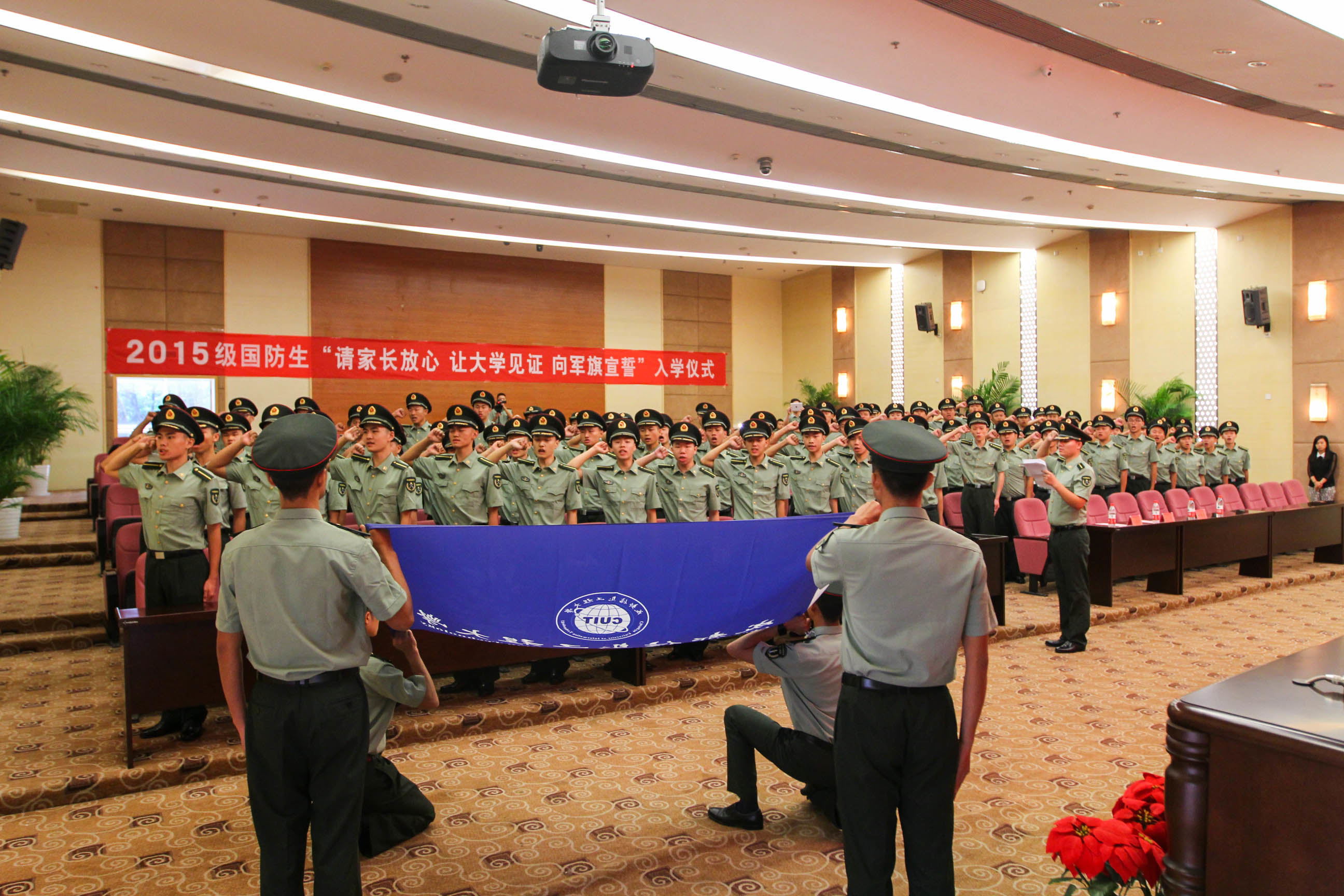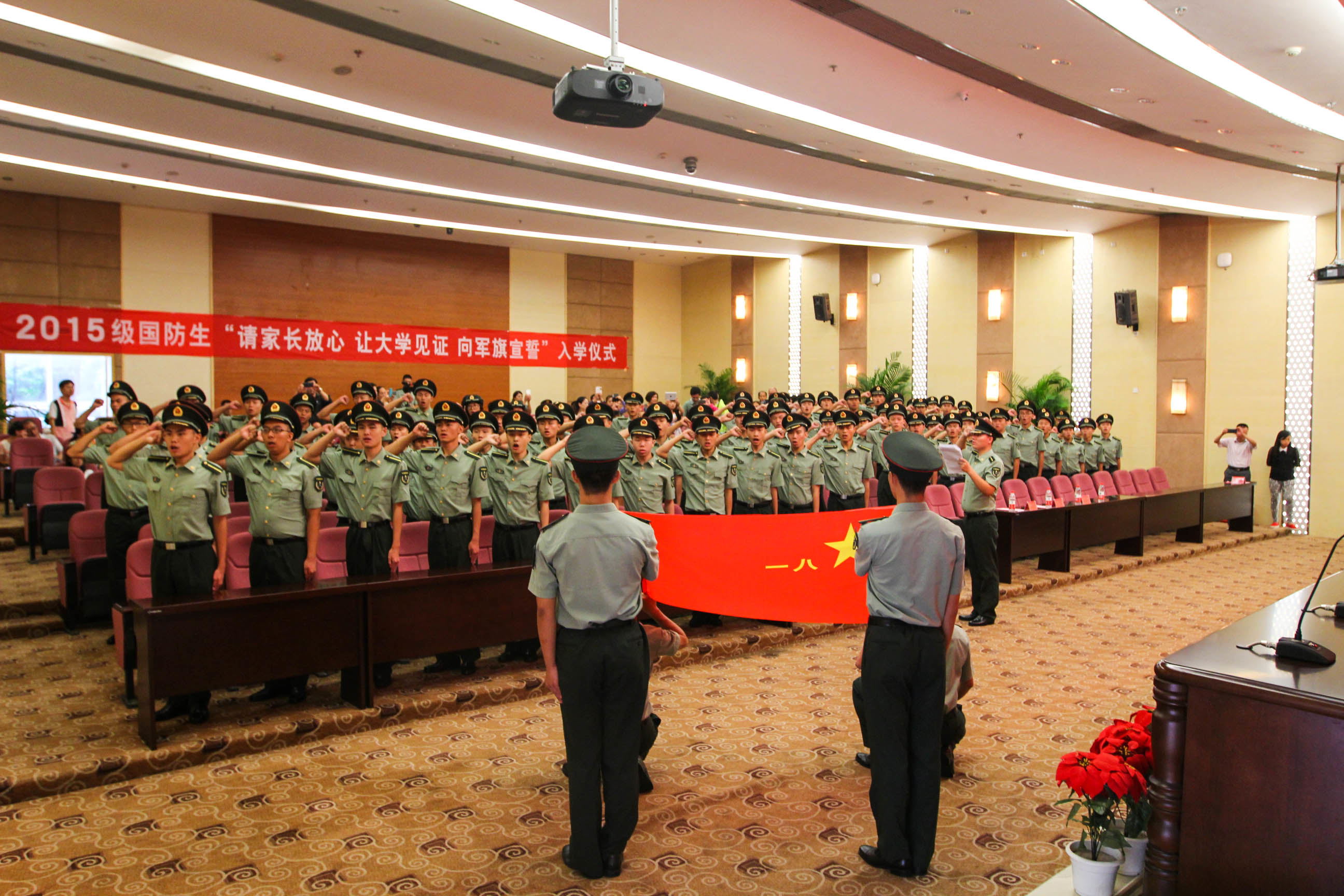 在校国防生代表2012级谢安斌代表高年级国防生表示,会毫不吝啬地将传承在历届国防生身上的优良品质和作风教给新的战友,与他们一同学习训练,一同成长进步。2015级国防生张森代表新生发言,十二年寒窗苦读,一朝圆梦成信,他们必将好好学习,努力前进,以昂扬的斗志为实现强军梦、中国梦不懈奋斗。