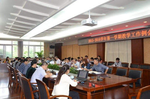 【本网讯】9月16日下午,学校在第七会议室召开本学期第一次教学工作例会,副校长何建新,教务处、教师发展中心负责人,各教学单位分管教学院长或副院长(主任)、办公室主任、教学秘书,教师教学发展中心、教务处相关工作人员参加了会议。会议由教务处处长陈敏主持。