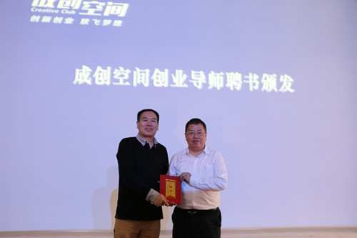 宫冠英为担任本次评委的四位嘉宾颁发创业导师聘书,壮大了成创空间导师团阵容,为创业小伙伴们提供全方位、精细化的创业辅导,激励了创业小伙伴的创业热情。