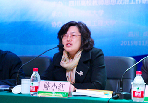 陈小红向大会的召开表示祝贺,对川内高校2015年宣传思想工作进行了详细的总结,对下一步的工作进行了部署。她表示,在过去的一年里,我省高校宣传思想工作、教师思想政治工作、网络文化工作等,取得了显著成效,四川高校教师思想政治工作研究会和网络文化研究会在其中发挥了积极的作用。在今后的工作中,要深刻认识新常态背景下相关工作面临的挑战,要着力从加强高校宣传思想工作制度建设、推进培育和践行社会主义核心价值观常态化建设、加大网络思政工作创新等方面,把各项工作进一步做实、做细、做优。研究会要充分发挥和拓展自身功能,充分发挥好参谋、智囊、桥梁、纽带的作用,为推进全省高校教师思想政治工作和网络文化工作再上新台阶贡献更大的力量。