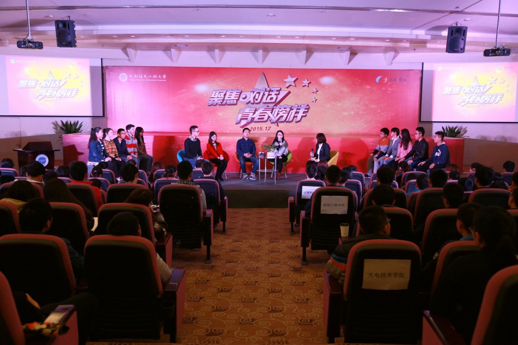 【本网讯】新莆京官网2015年度“聚焦·对话 青春榜样”宣讲会于2015年12月7日—12月10日在航空港校区国际会议厅和龙泉校区学术报告厅顺利举行,本次活动由学生工作处主办、计算机学院承办。本期聚焦·对话青春榜样共举办四场,航空港校区和龙泉校区各两场,学校副校长于世祥、学生工作处处长戴丽红、副处长潘光林、陈智勇以及部分学院党总支书记、全体辅导员、近1200名学生分别参加了本次活动。活动由控制工程学院辅导员田晓旭、信息安全工程学院辅导员何佩遥主持。