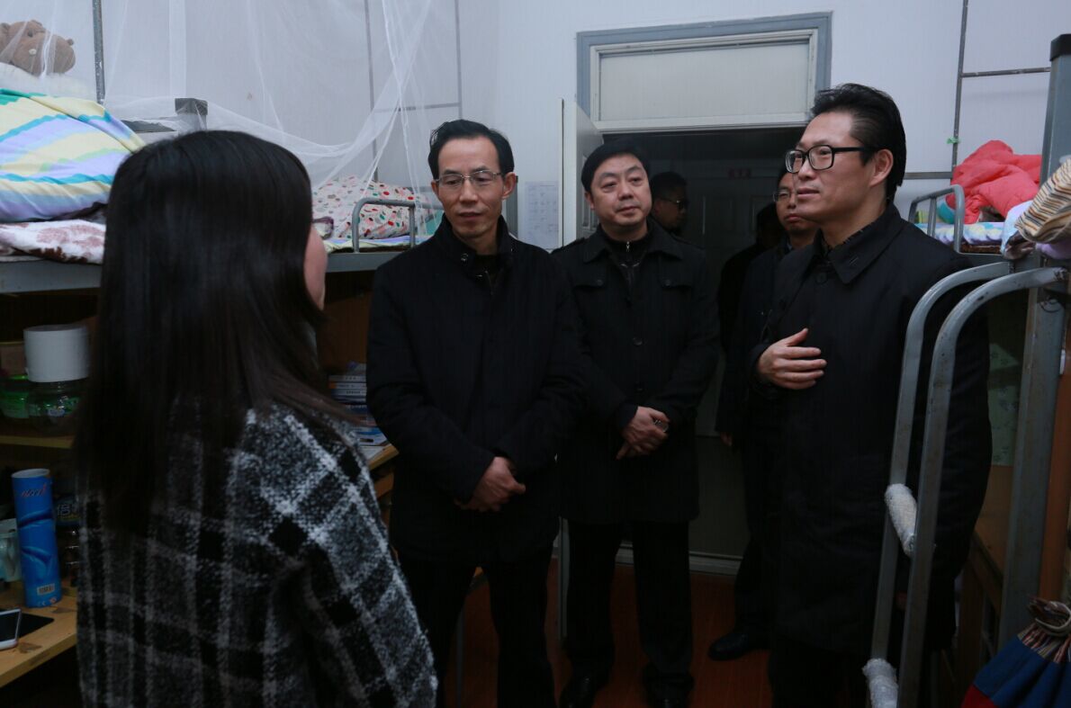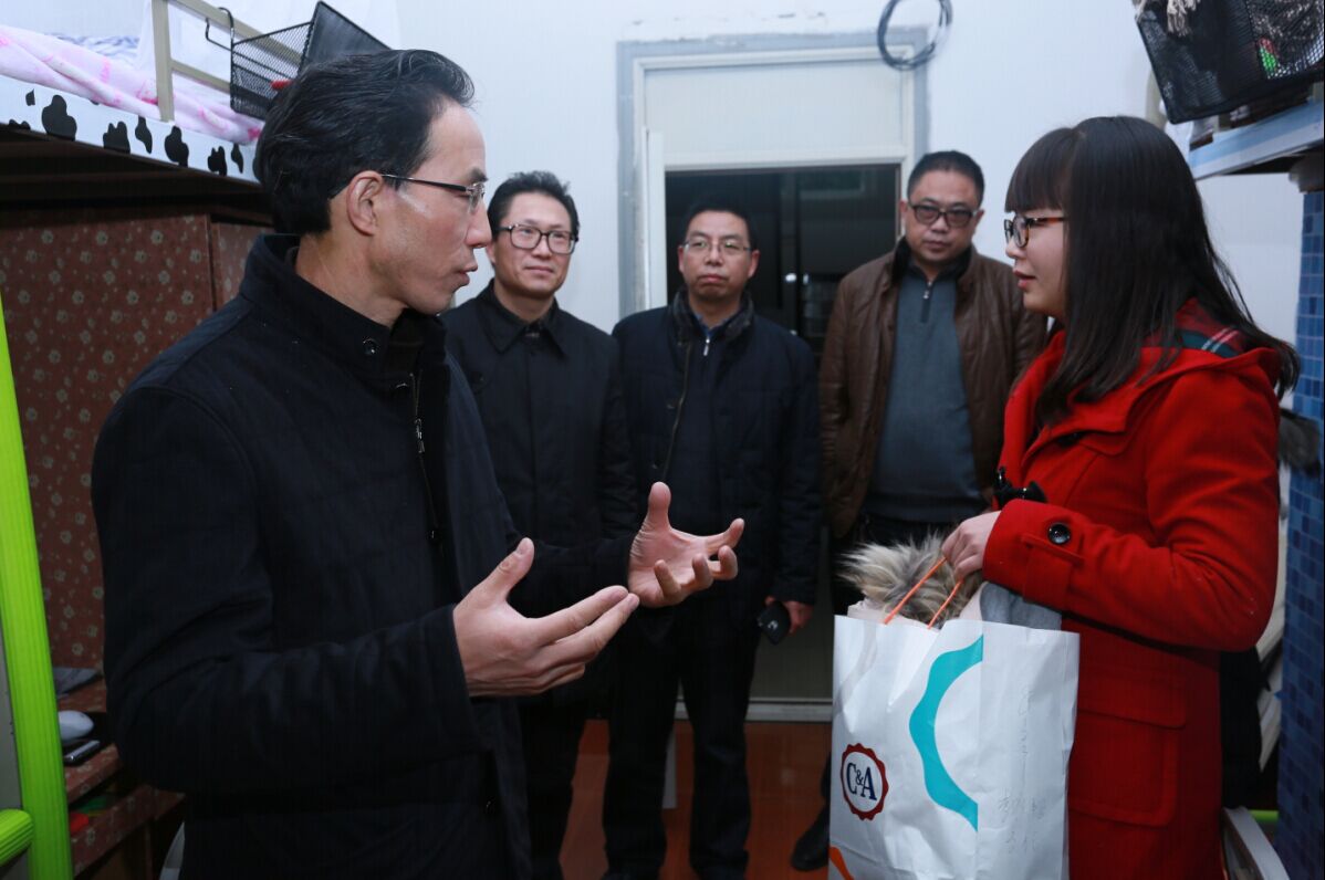 【本网讯】12月22日下午,为深入了解学生生活情况,学校党委书记赖廷谦、校长周激流带队到龙泉校区和航空港校区学生宿舍看望、慰问家庭经济困难学生,送去冬日的温暖和学校的关怀。一行陪同慰问的还有副校长于世祥、向武,学生工作处、后勤管理处、驻校选培办负责人,相关学院的党总支书记和辅导员。