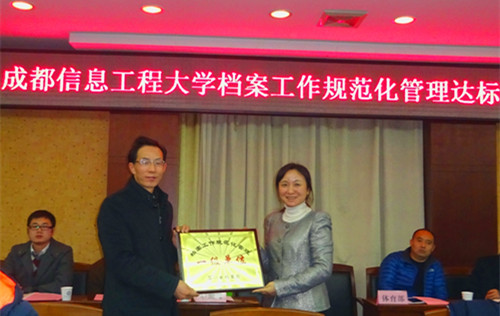 【本网讯】12月29日,由省档案局经济科技档案业务指导处处长林红为组长,省档案局经济科技档案业务指导处副处长王晓瑜、四川大学档案馆馆长党跃武、电子科技大学档案馆馆长饶永,省档案局经济科技档案业务指导处副主任科员刘荔枝组成的四川省档案工作规范化管理定级考评专家组莅临新莆京官网,对新莆京官网档案工作规范化管理省一级标准资格进行了考评认定。经过专家组评审,新莆京官网档案工作规范化管理达到四川省一级标准。专家组组长林红为新莆京官网颁发证书并授牌,学校党委书记赖廷谦代表学校接受证书和牌匾。