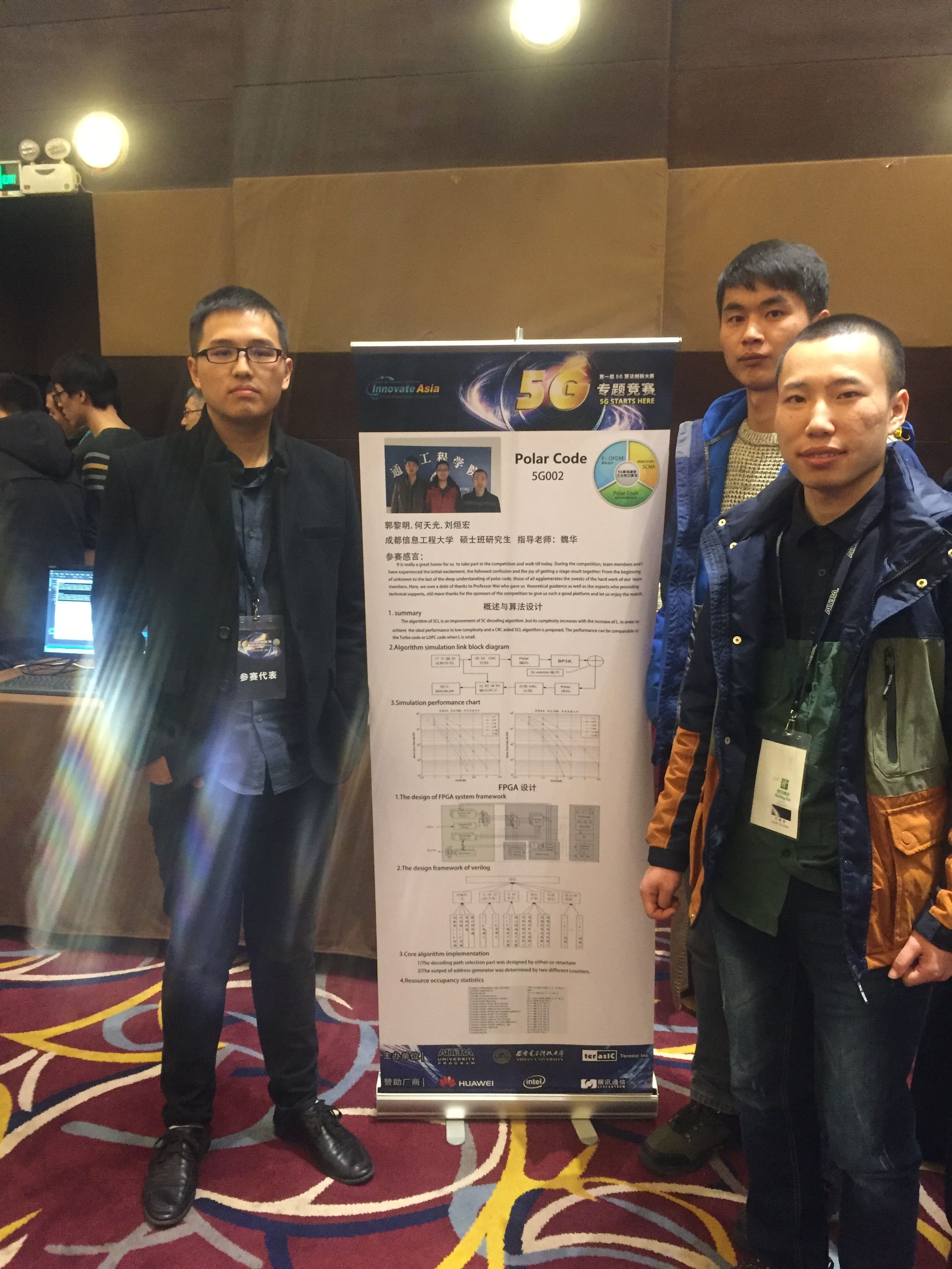 新莆京官网通信工程学院研究生二年级学生何天光,郭黎明,刘烜宏,由魏华博士和李蠡博士任指导老师,并组成团队,选择Polar Code为赛题参与这次大赛。经过七个多月的努力,他们成功进入全国仅有30支队伍入围的决赛(新莆京官网参赛队是唯一一支来自二本院校的团队),并最终取得“优秀算法仿真设计奖”。