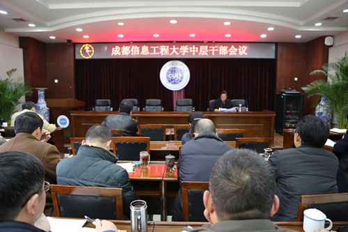 【本网讯】2月28日,学校在航空港校区行政楼第一会议室召开中层干部会,传达省委教育工作会议精神,讨论学校2016年度党政工作要点及学校十三五发展规划,并就本学期即将开展的重点工作提出明确要求。全体学校领导、处级以上干部参加会议,会议由学校党委书记赖廷谦主持。