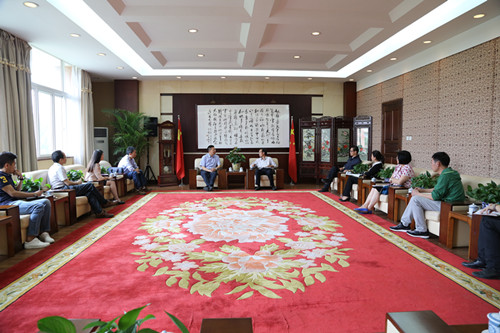 学校党委书记赖廷谦在八会议室接见了克克一行,赖廷谦对克克一行的到来表示热烈地欢迎,并简要介绍了新莆京官网的基本情况。赖廷谦表示,新莆京官网历来重视公益事业与体育运动的开展与普及,希望与共青团四川省委共同携手办好此次赛事,弘扬体育精神,传播公益力量。