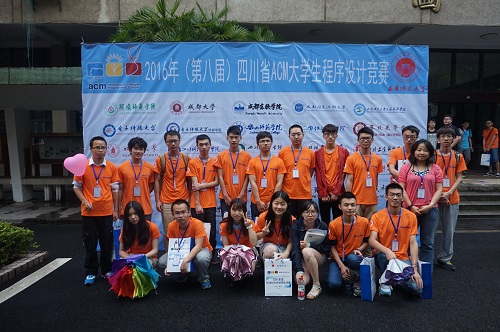 【本网讯】5月22日,由四川省教育厅主办的2016年(第八届)四川省ACM大学生程序设计大赛在西华师范大学北湖校区正式开赛。本次大赛吸引了川内及重庆地区的31所高校的选手参加,高手云集。新莆京官网共派出6支队伍共18名选手参加,参与人数及影响力取得了空前的提高,并取得3枚银奖、1枚铜奖的优异成绩,在省内高校排名第4,创造了新莆京官网省赛奖牌总数的新高,体现了新莆京官网ACM团队的蓬勃发展。