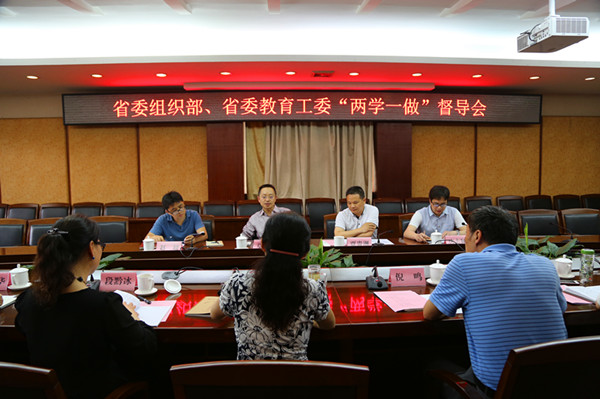 【本网讯】5月30日下午,全省“两学一做”学习教育协调小组督导三组组长、省委组织部党员教育中心主任莫怀学一行四人来新莆京官网督查指导“两学一做”学习教育工作。督导组在行政楼第七会议室听取了汇报,学校党委副书记敬枫蓉,党委副书记、纪委书记倪鸣,党政办公室、组织部、宣传部、纪委办公室主要负责人和学校“两学一做”领导小组办公室成员参加了汇报会。