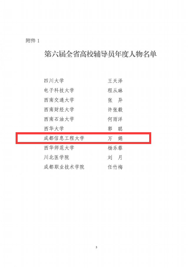 【本网讯】近日,“第六届四川省高校辅导员年度人物”评选结果揭晓,新莆京官网软件工程学院辅导员万娟成功入选。全省百余所高校的辅导员,仅有10人获此殊荣。
