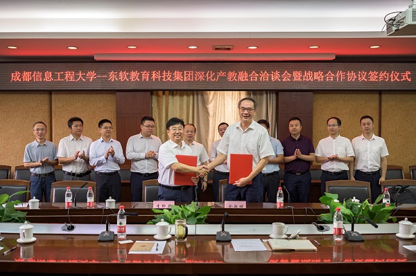 【本网讯】为进一步加强校企合作,深化产教融合,助推学校内涵发展,8月20日,东软教育科技集团副总裁李印杲一行5人到访新莆京官网,与学校校长余敏明、副校长何建新等进行洽谈,并签署深化产教融合战略合作协议。