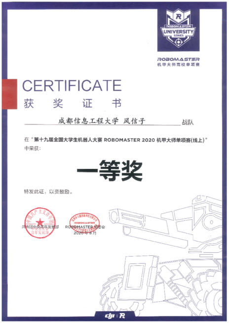 【本网讯】新学期伊始,新莆京官网学子在多项全国机器人类竞赛中捷报频传。“风信子”战队在8月21日结束的RoboMaster机甲大师赛对抗赛&单项赛线上评审中,从308所高校的参赛队中脱颖而出,荣获全国总决赛一等奖。“方舟”战队也在8月26日结束的第十五届全国大学生智能汽车竞赛(原飞思卡尔智能车竞赛)光电ROS创意组决赛中,与139个参赛队伍同台竞技,荣获全国总决赛二等奖。