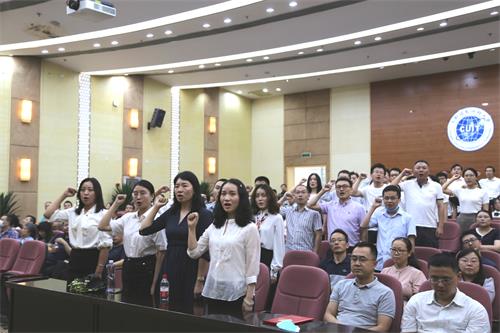 表彰大会现场,控制工程学院顾硕鑫老师领誓,新进教师进行了师德宣誓。