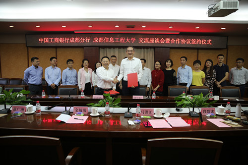 会上,双方相关部门负责人就合作具体事项进行了深入的交流和探讨。学校党委办公室、校长办公室、人事处、计划财务处、区块链产业学院及中国工商银行成都分行相关相关部门负责人参加了会议。