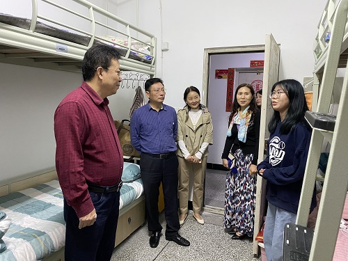 【本网讯】9月21日,学校党委书记周激流,党委副书记马洪江和学校相关职能部门负责人,前往学生公寓看望2020级新生。