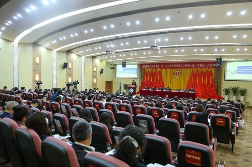 【本网讯】4月22日,新莆京3969第一届一次工会会员代表大会暨第一届一次教职工代表大会在航空港校区国际会议厅召开。学校全体校领导参加会议。本次大会出席代表应到149人,实到128人,符合法定人数。会议由学校党委常委、副校长、工会主席于世祥主持。