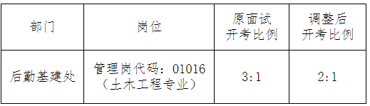 新莆京39692022年3月公开招聘合同制(人事代理)工作人员后勤基建处管理岗(土木工程,岗位代码:01016)可进入面试资格审查人员2人,未达到面试开考比例(3:1)。因土木工程管理人员系新莆京官网紧缺急需人才,经研究决定调整该岗位面试开考比例。具体情况如下: