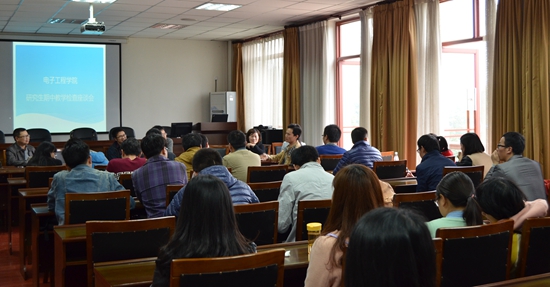 【本网讯】11月19日,电子工程学院研究生期中检查交流会在气象楼215举行。电子工程学院副书记彭勇、副院长马尚昌,副院长黄启宏以及研究生导师代表、各年级研究生班主任以及各年级研究生代表参加了此次交流会。