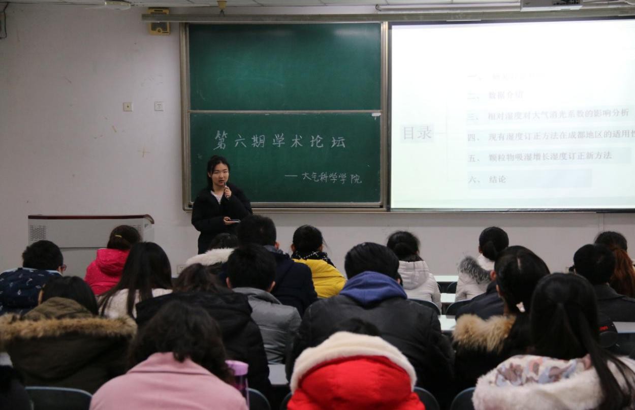【本网讯】为加强研究生间的学术交流,活跃校园学术氛围,促进研究生创新意识与能力的培养。大气科学学院于12月21日下午在第一教学楼1201教室成功举办第六期研究生学术论坛。本期论坛由大气科学学院研究生会学术部主办、各部门合作协办,大气科学学院近百位研究生参加了此次论坛。