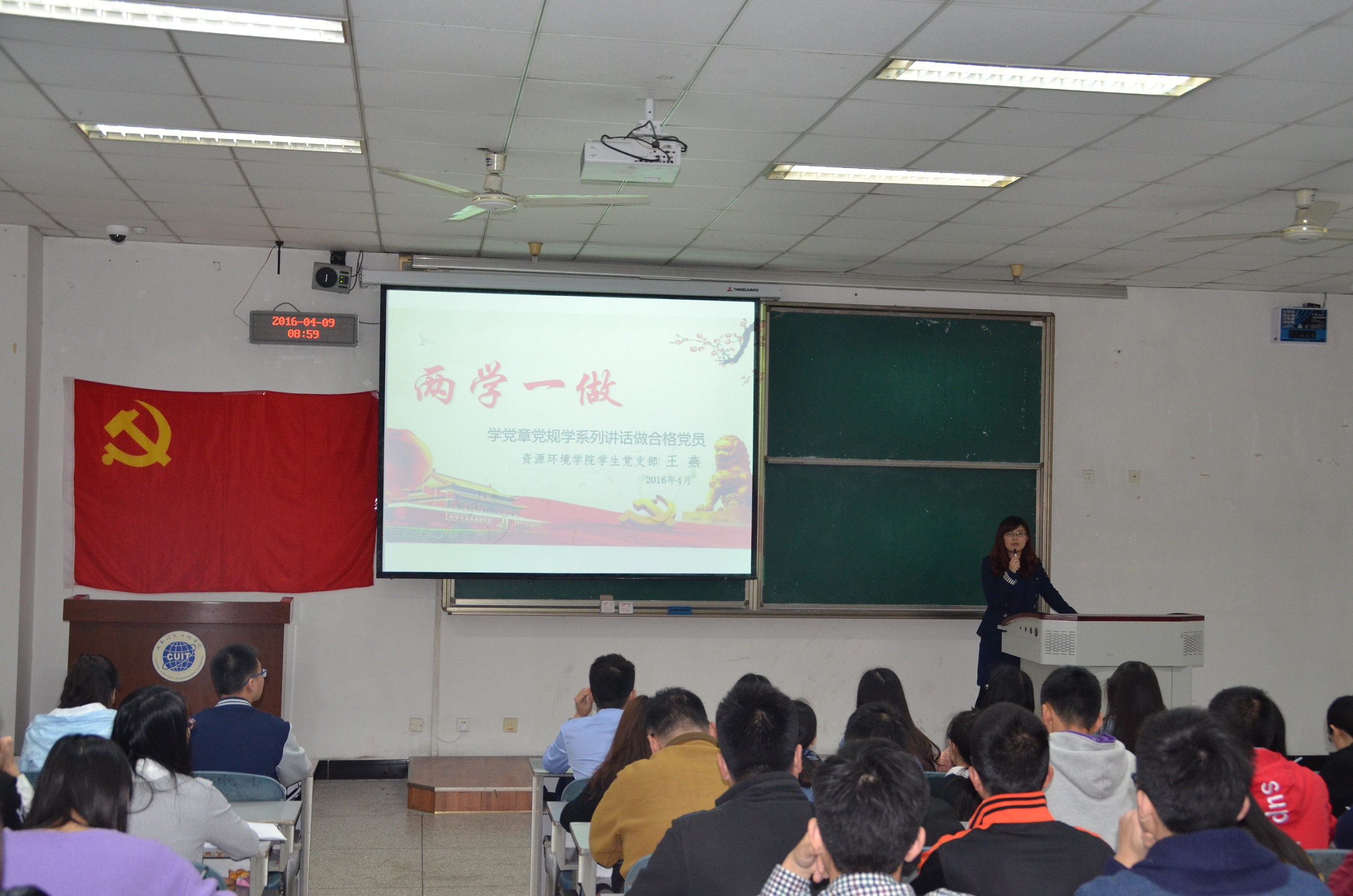 【本网讯】为认真贯彻执行党中央《关于在全体党员中开展“学党章党规、学系列讲话,做合格党员”学习教育方案》,4月9日上午,资源环境学院学生党支部开展“两学一做”学习教育。学生党支部全体党员,学生党支部书记王燕老师参加指导。