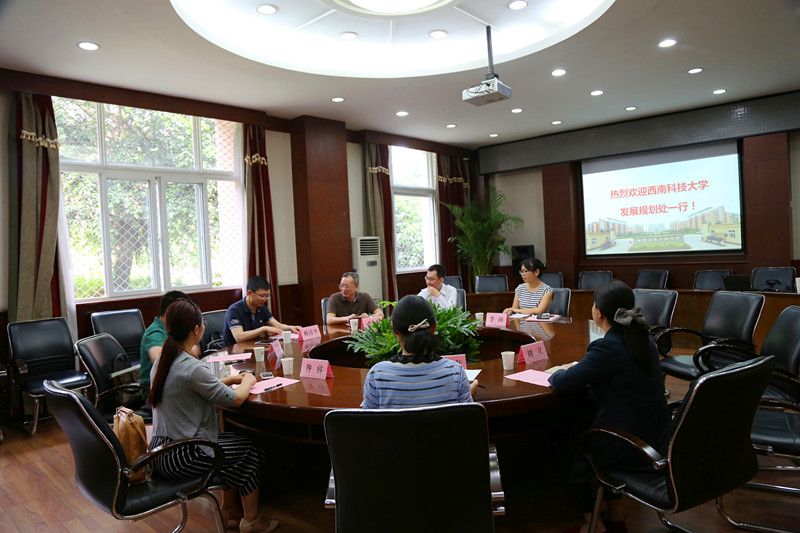 【本网讯】5月4日上午,西南科技大学发展规划处处长蒋道平一行三人来新莆京官网调研学校“十三五”发展规划编制情况。交流会在航空港校区行政楼第六会议室召开,发展规划处处长李黎、副处长李正华和相关工作人员参加了座谈。会议由李黎主持。