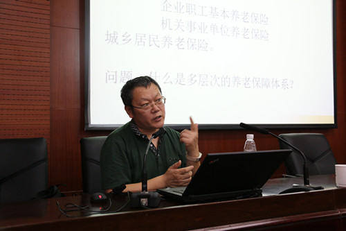 到场师生就保险公平性、基础养老保险全国统筹、延长退休年龄、保障费率调整等话题与赵处长展开了热烈的讨论。
