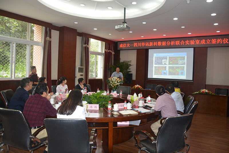 当天,双方在新莆京3969六会议室共同举办了数据分析联合实验室成立签约仪式,成都市经信委办公室副主任兼市场开拓处副处长明亮、华讯新科执行总裁庞涛及众多高管、新莆京3969通信工程学院院长李英祥及多位教授出席仪式,仪式由联合实验室主任陈超老师主持。该数据分析联合实验室将结合华讯新科与新莆京3969的校企资源,以OBD(On-Board Diagnostic,车载诊断系统)设备及数据分析系统研发为主,同时面向交通、物流及金融行业展开数据应用研发。