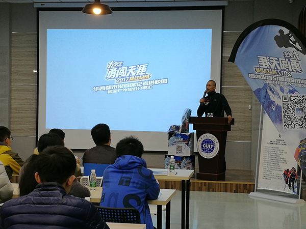 【本网讯】3月24日,学校青年志愿者协会在新莆京官网创新创业俱乐部举办了“校园户外知识分享汇——华西都市报首席记者进校园”活动。活动特邀华西都市报首席记者、国家级登山健将刘建作为主讲人,和在场的听众分享了他传奇的登山经历以及经历思考的感悟。