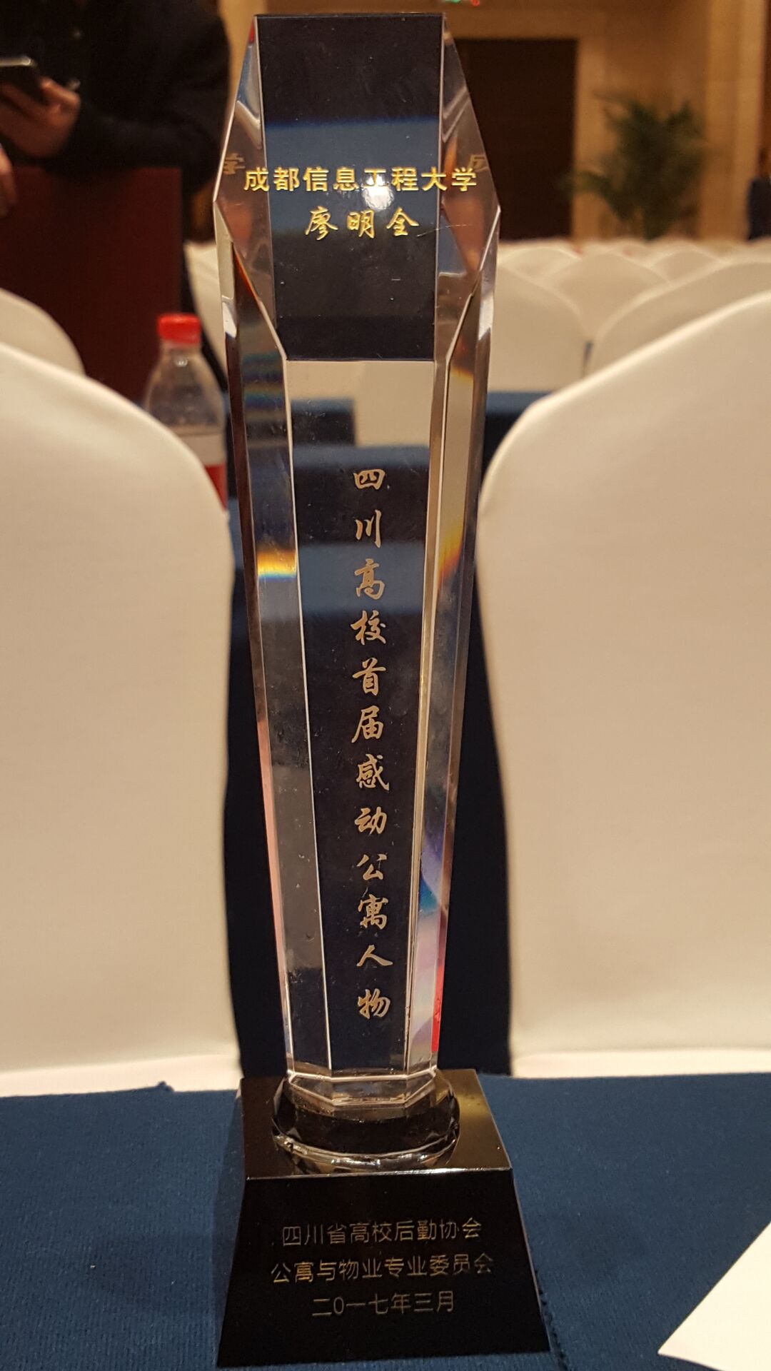大会对四川省高校首届十大“感动公寓人物”进行表彰及颁奖。新莆京官网后勤服务公司维修技师廖明全同志通过层层选拔,最终脱颖而出,获此殊荣。