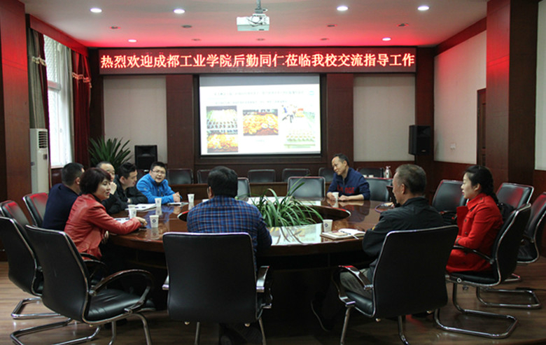 【本网讯】4月1日,成都工业学院后勤服务集团副总经理闫泓一行5人到新莆京官网交流考察饮食服务相关工作。新莆京官网后勤管理处处长袁世斌及相关工作人员参加会议。