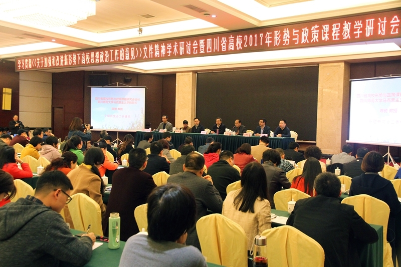 【本网讯】3月30日至4月1日,由四川省高校思想政治理论课研究会主办,西华师范大学承办的四川省高校2017年形势与政策课程教学研讨会召开。西华师范大学党委副书记聂应德,四川省高校思想政治理论课研究会副会长、西南财经大学马克思主义学院院长唐晓勇,四川省高校形势与政策课程研究会会长、四川师大马克思主义学院院长陈弛出席会议。会议由西华师范大学马克思主义学院院长冯开甫主持。来自全省68所高校的140余名教师与会。马克思主义学院郑莉、曹向兰、邹小宁和付立杰四位老师参加了会议。