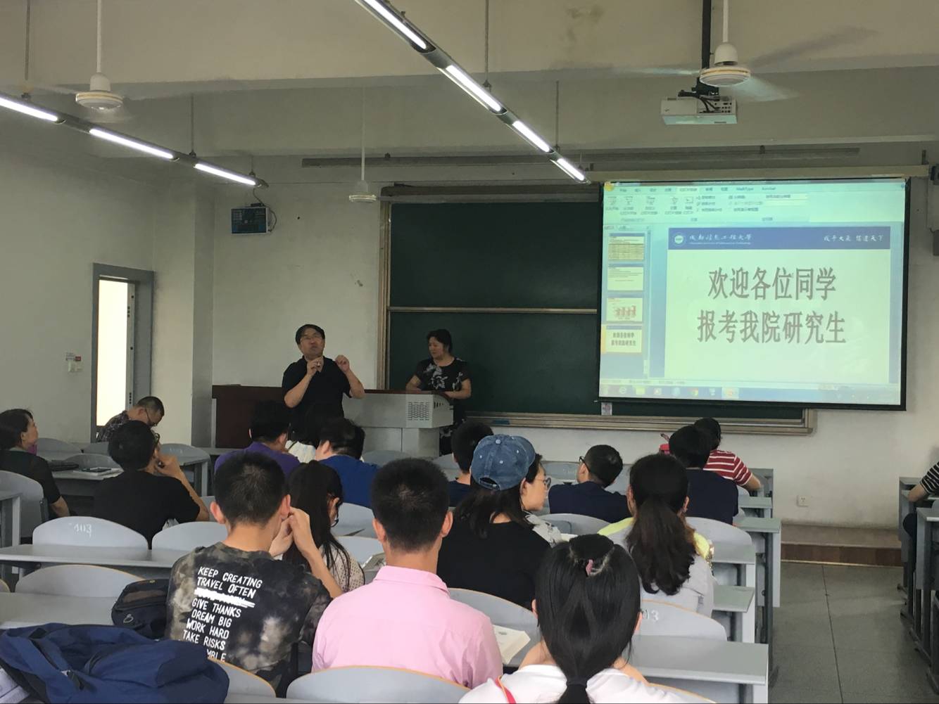 【本网讯】7月6日下午,资源环境学院2018年环境专业和测绘专业考研宣讲会分别在航空港校区1403和1404教室举行。学院研究生导师王永前、印红玲、卢晓宁,部分本科生代表参加了宣讲会。会议由资源环境学院院长叶芝祥主持。