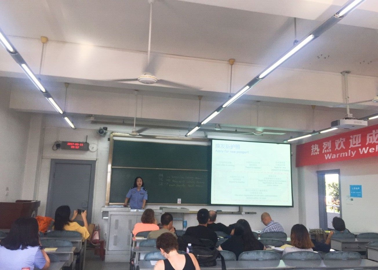 成都市双流区出入境管理中心的赵警官给留学生详细讲解了关于留学生签证和人身财产安全等方面注意事项,耐心回答了留学生提出的问题。