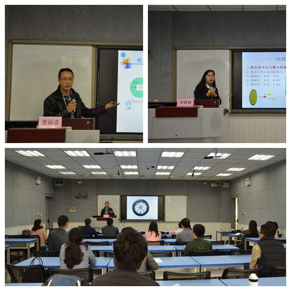 电子工程学院的张福贵、统计学院的李秋敏分别为新进教师作了15分钟的微课示范教学。他们从选题价值、教学设计与组织、教学方法与手段、目标达成、教学特色和教师风采六个方面,向新教师们展示如何将知识点系统有效的与学生分享。