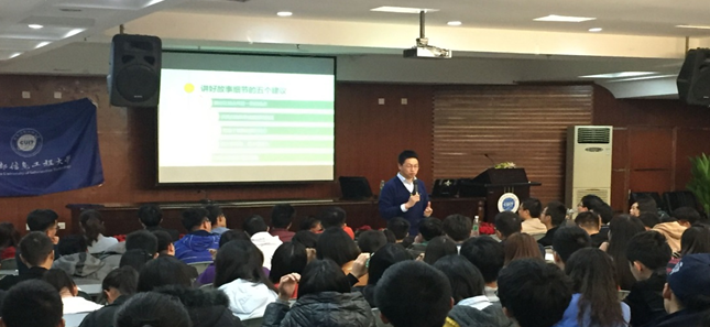 张志围绕“如何做一场精彩的路演秀”作专题辅导,他从路演的台风、时间、故事、幻灯片等四个方面详细阐述了比赛时的路演答辩所注意的几个方面和经验技巧。他分享到,要打造一个优雅的路演台风,要坚持“112原则”,即1分钟,200字,2页PPT。他强调,要注意逐字稿的书写,演讲声音的顿挫,个人形象的展示,积极锻炼控场能力并加强排练的力度。他说,一个好的PPT需要层次清晰,标题醒目,故事的情感点更是路演环节的加分项。张志还从强化观点,强调证据,煽情演讲,团队介绍等四个方面向全体师生详细讲解了如何准备一篇优秀的路演PPT,并应用正反面案例典型为我们清晰地展示了需要注意的细节。演讲结束后,张志与现场同学进行了精彩的互动,并对同学们提出的问题进行了逐一解答。