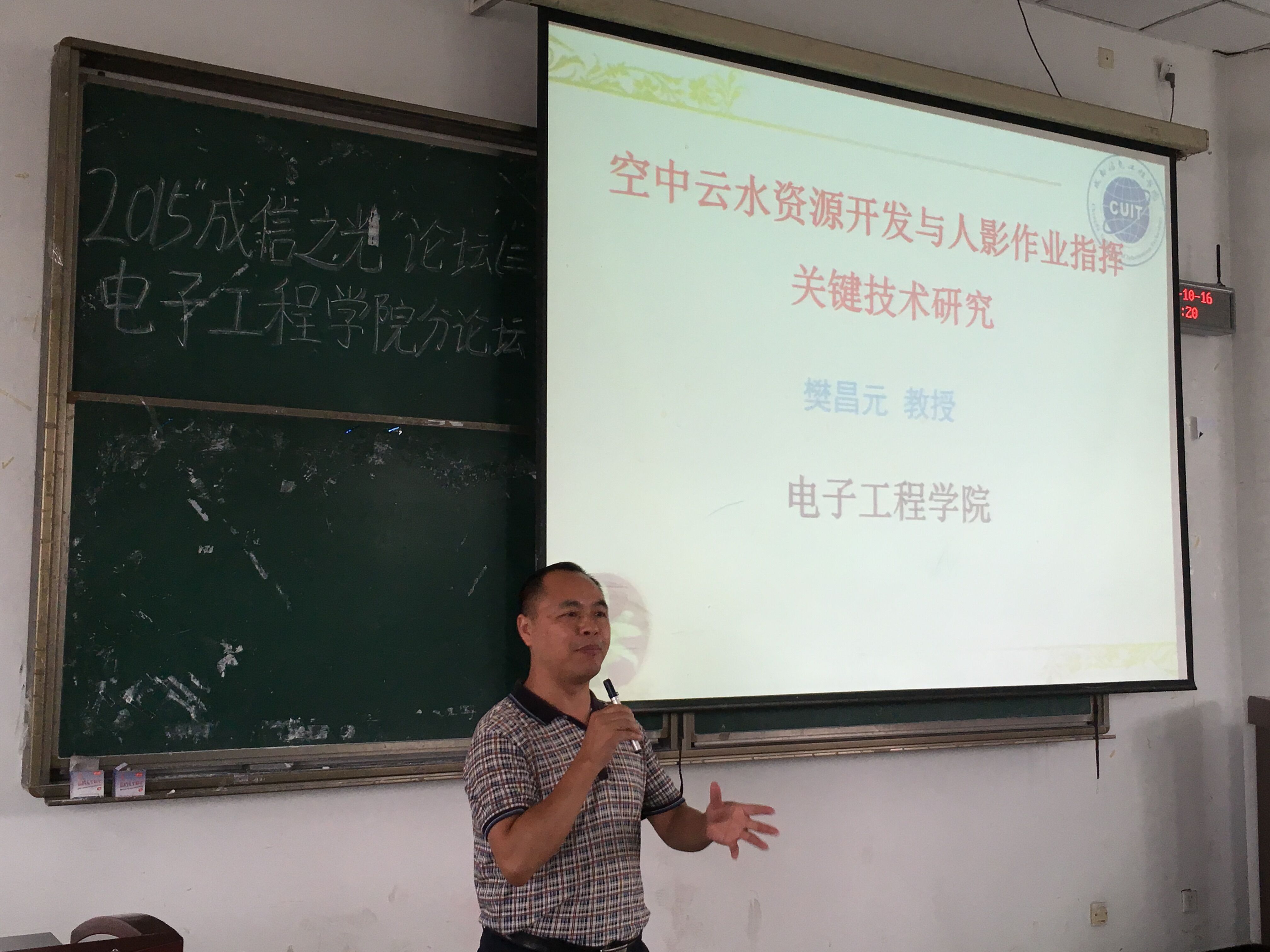 【本网讯】10月16日上午,“成信之光”论坛(三)之《空中云水资源开发与人影作业指挥关键技术研究》讲座在新莆京官网航空港校区4313教室顺利举行。本次论坛主讲为电子工程学院樊昌元教授。电子工程学院部分教师、在校研究生及部分本科学生参加了此次讲座。
