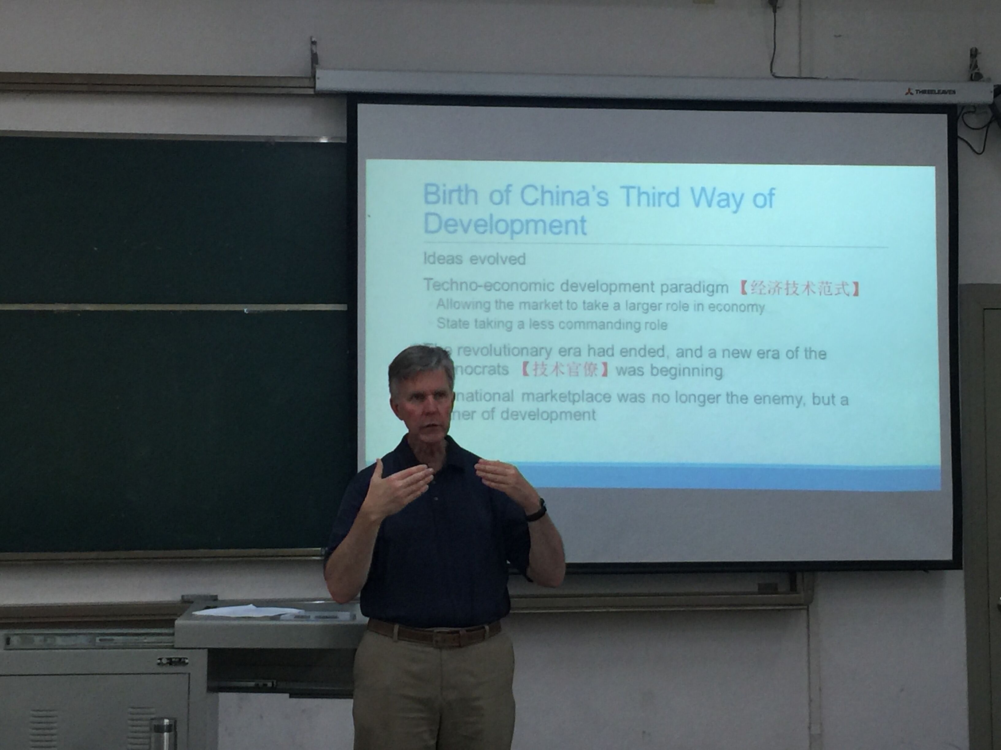 【本网讯】 6月24上午,美国新罕布什尔大学政治学院Lawrence C. Reardon副教授在航空港校区1103教室为新莆京官网政治学院教师作学术报告,主题为“中国发展的第三条道路”。报告会由新莆京官网政治学院副院长李忠伟主持,政治学院教师和其他学院相关教师参与了学术报告会。