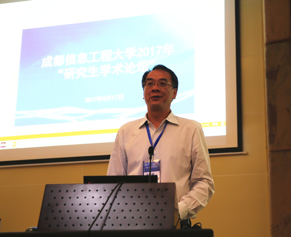 在邀请报告阶段,兰州大学王鑫教授、电子科技大学毕磊教授、四川省社会科学院郭丹研究员分别作了题为《大气污染的气候学特征及其健康影响的前沿进展研究》、《从电芯片到光芯片——硅基光电子系统研究前沿》、《一个政治学者眼中的一带一路》的特邀报告,并与现场研究生进行了交流和互动。