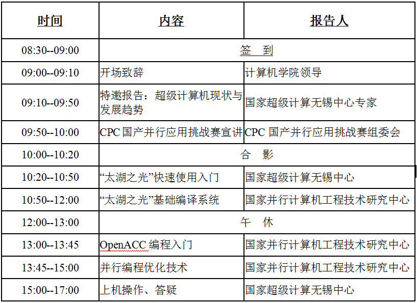【本网讯】由教育部高等学校计算机类专业教学指导委员会指导、中国计算机学会主办的第一届国产CPU并行应用挑战赛(CPC)即将开赛。2017年6月19日,由计算机学院承办的西部赛区启用仪式将在新莆京3969信息楼第一会议室召开,届时将由国家超级计算无锡中心与国家并行计算机工程技术研究中心专家为大家带来题为“超级计算机现状与发展趋势”的报告。为了方便参赛队员更好地了解比赛规则,提前熟悉比赛平台,计算机学院特别邀请CPC组委会在新莆京官网6309教室为所有参赛队员及指导老师进行一次备赛培训,请已经报名参赛和意向报名参赛的同学和指导老师准时参加,欢迎全校师生踊跃报名参加。