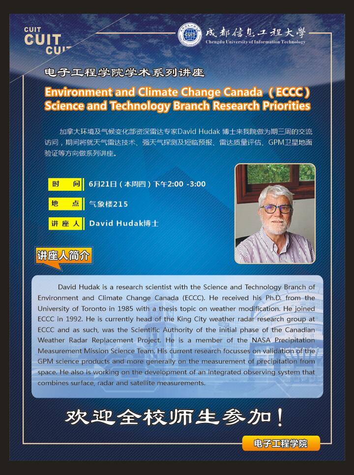 上一条:【学术预告】加拿大环境部资深雷达专家David Hudak 博士系列学术讲座预告
