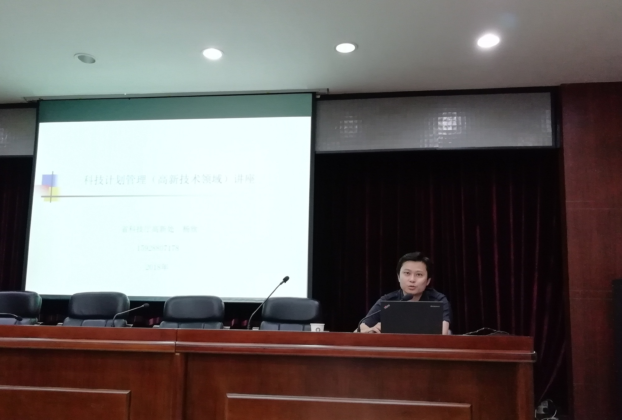 四川省科技厅高新处杨欣做了《科技计划管理(高新技术领域)讲座》。他从省级科技项目的验收出发,详细地介绍了验收的要求、过程、结果,讲解了如何根据项目研发的实际情况科学地进行项目管理;以科技厅项目立项的过程为入手点,详细介绍了项目申报材料的准备和撰写,特别强调了项目申请内容、目标、技术路线的合理性和重要性,以及如何合理地编制项目经费预算并有效使用经费。他对2019年申报工作动态以及省级科技项目的申报要求、流程和实施中的注意事项进行了讲解,提出应突出优势、目标明确地进行各类项目的申报。