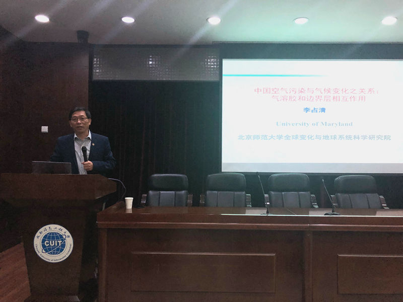 交流期间,李占清做了题为《中国空气污染与气候变化之关系:气溶胶和边界层相互作用》的学术报告,从气溶胶与全球气候变化、气溶胶与季风系统、气溶胶与边界层相互作用、气溶胶、风、云、降水相互作用等四个方面进行了介绍。大气科学学院、资源环境学院、电子工程学院100多师生参加了报告会,报告会由副校长范广洲主持。