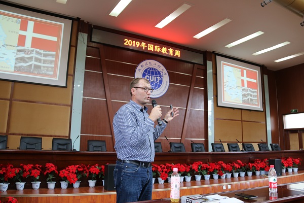 【本网讯】10月16日下午,由国际交流合作处主办,管理学院承办的国际交流合作周系列讲座活动在龙泉校区学术报告厅成功举办。丹麦VIA大学学院社会学专家Jan Erik Rojk jar Rasmussen、美国新罕布什尔大学的 Dan Silverma教授以及玻利维亚经济学专家Juan Pablo Suarez应邀来到活动现场,为龙泉校区近三百名师生带来了精彩的学术报告。活动由管理学院副院长李贵卿主持。