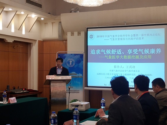 大气科学学院王式功教授作为特邀专家,在气象灾害服务与风险评估技术会场作了题为“追求气候舒适、享受气候康养”的特邀报告。他围绕气象医学的全民大健康应用、追求舒适是生物界的共同愿望、气象医学大数据挖掘的初步研究成果及其应用等方面,对气象医学的研究意义、研究进展、大健康应用及未来发展前景等内容进行了全面介绍和经验分享。他根据于新文提出的在气象防灾减灾服务中“趋利”和“避害”并重的观点,发表了应重视在人类疾病预防和健康养老等方面提供气象应用服务的建议,并得到了与会专家和学者们的一致认同。