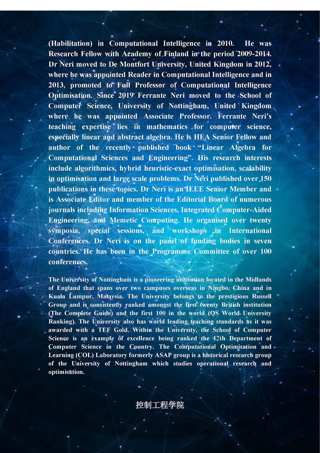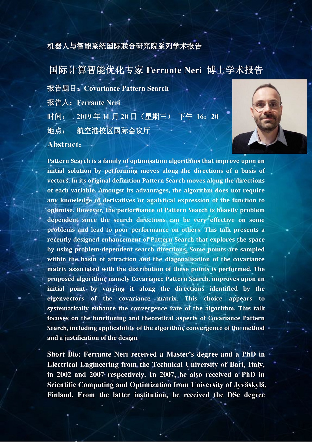 【学术预告】国际计算智能优化专家Ferrante Neri博士来校作学术报告