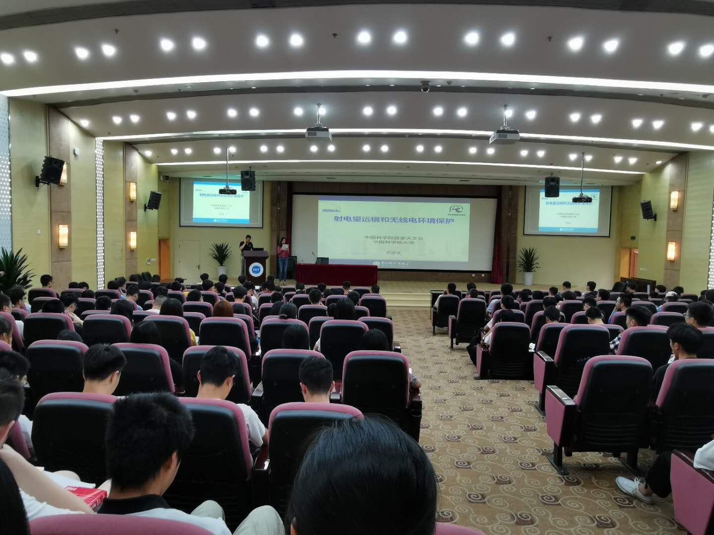 【本网讯】应电子工程学院邀请,9月15日,中国科学院国家天文台研究员李建斌在国际会议厅作了题为《射电望远镜和无线电环境保护》的学术报告,学校副校长何建新、电子工程学院师生参加了本次报告。